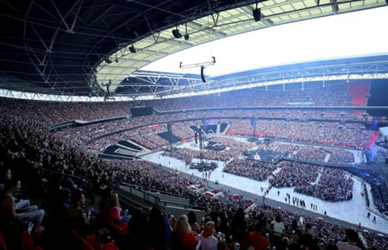 アイドル防彈少年団(BTS)メンバーJinの一言に2019年英国のロンドン・ウェンブリー・スタジアムは1985年「ライブ・エイド」の現場に戻った. 客席を詰め切ったフアン「アミ」六万名 Jinの口呼と共に大きな声で「エ~オ」を叫んだ. 1日(現地時間)午後、此所で開かれた防彈少年団ワールド・スタジアム・ツアー「ラブ・ユアセルフ: スピーク・ユアセルフ」公演は彼等に「21世紀ビートルズ」との修飾語が決して誇張では無いとのことを證明した場所だった.